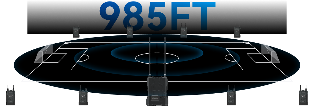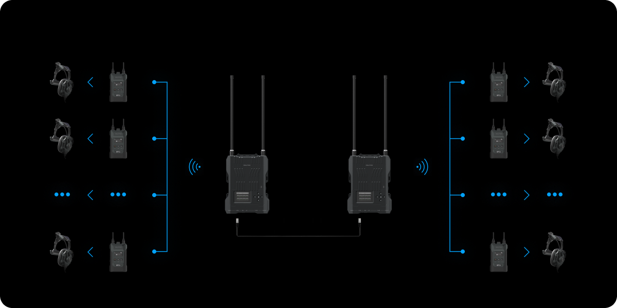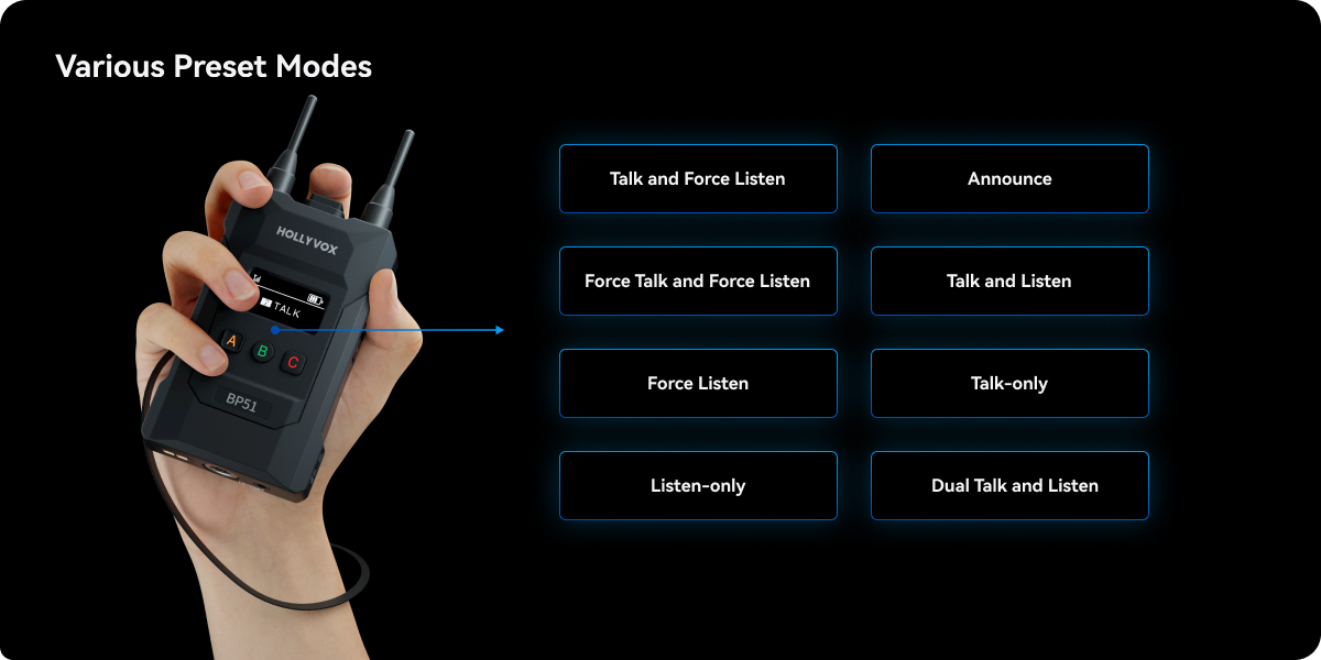 Introducing Hollyvox G51, the ultimate full-duplex wireless intercom system recognized for its unparalleled professional performance. With advanced dual-mic Environmental Noise Cancellation (ENC) technology, this professional full-duplex wireless intercom system ensures unparalleled communication clarity, ideal for production teams working in loud environments. The ergonomic headset design offers optimal stability and comfort, allowing you to stay focused on your tasks. With an impressive LOS range of 1,300ft (400m), it is the ideal choice for small- and medium-scale events such as stage performances and sports events, enabling seamless team coordination through extensive and interference-free communication.