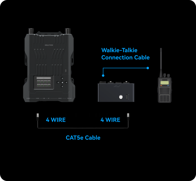 Our device also supports connection to other Hollyvox intercom systems via the 4-wire interface